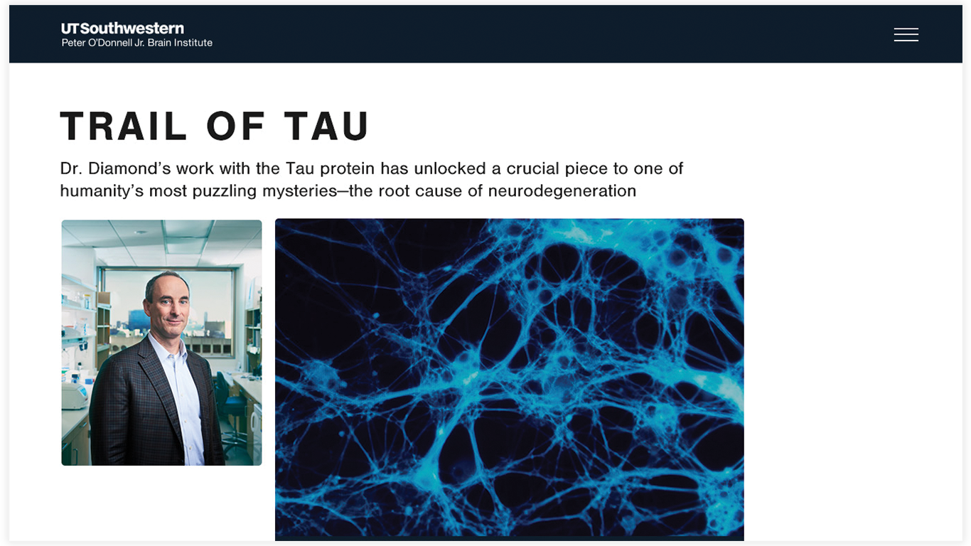 How do you convince people that donating to the Peter O’Donnell Jr. Brain Institute isn’t just a simple act of donation, it’s an investment in the future of humanity? Portray the doctors in a light that’s true to the magnitude of the work they conduct on a daily basis. To do that, I created an entirely new website from the ground up that truly embodies the spirit of a brain institute on the forefront of a new frontier of medical discovery.